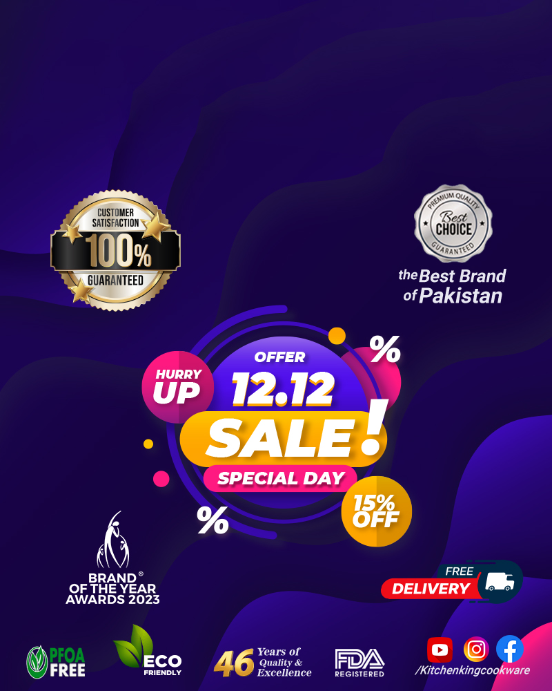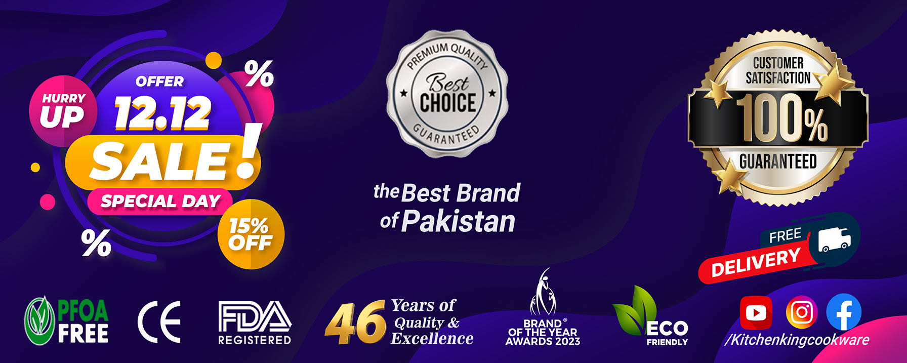 Millions of homes and professional chefs throughout Pakistan as well as internationally rely on Kitchen King Cookware due to its outstanding quality, performance, and durability. We make use of food-safe materials, high-quality PFOA FREE non-stick coatings, and state-of-the-art manufacturing processes that adhere to global standards.
