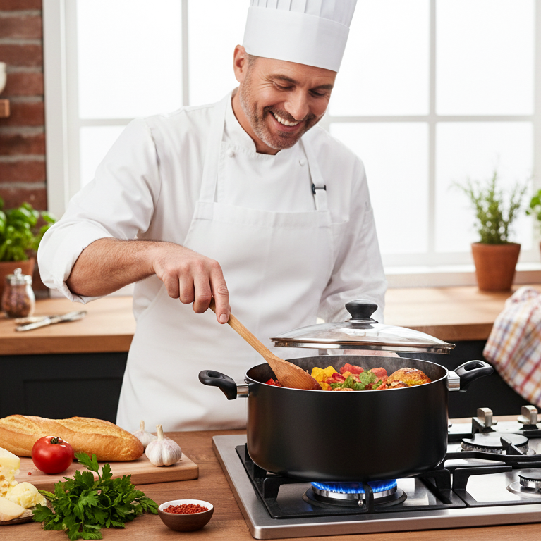 Kitchen King Cookware provides variety of best non-stick casseroles in range of sizes and designs which ensure chefs enjoy the time while they cook beef, chicken, fish or delicious rice in whatever quantity they want. A perfect stylish body is manufactured from heavy gauge high quality pure aluminium which ensures even heat distribution for better cooking and results in fantastic performance throughout in kitchen. The use of premium 2x layer of non-stick coating (PFOA free) prepares healthier meals without the release of any harmful toxins or fumes and certifies the release of food easily. The heat-resistant and ergonomic handles with a smooth finish gives it a strong grip and luxurious exterior look. It comes with an adaptive tempered glass lid with a steam vent, allowing you to monitor on the progress of your meal without losing moisture. Our cookware is suitable for gas and electric glass stovetops. Dishwasher safe but hand-washing is recommended to preserve the appearance of cookware.